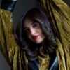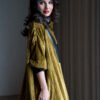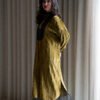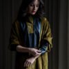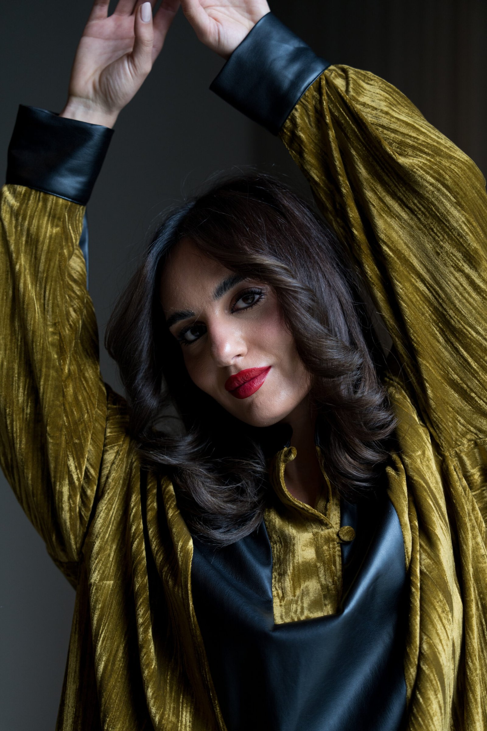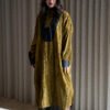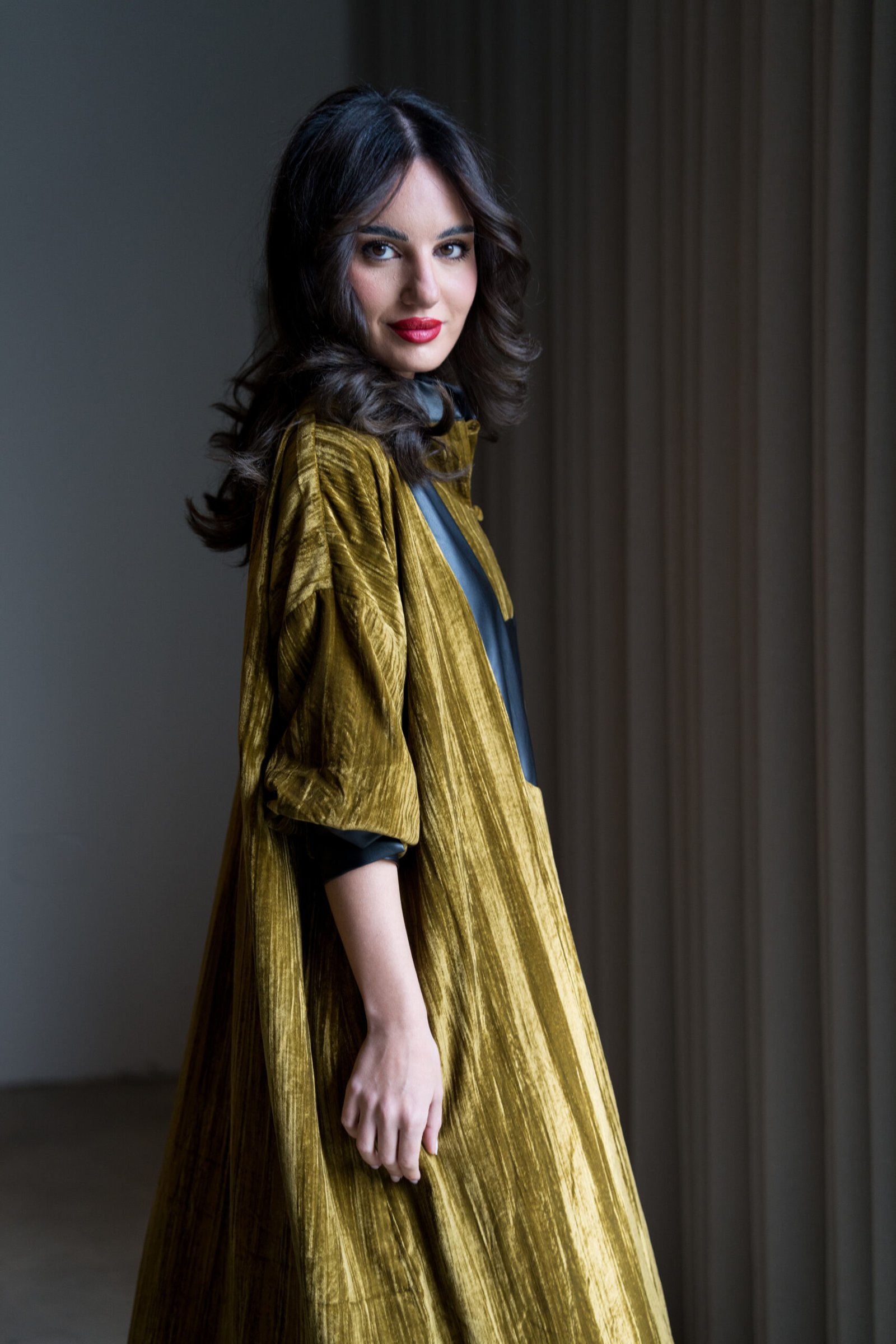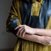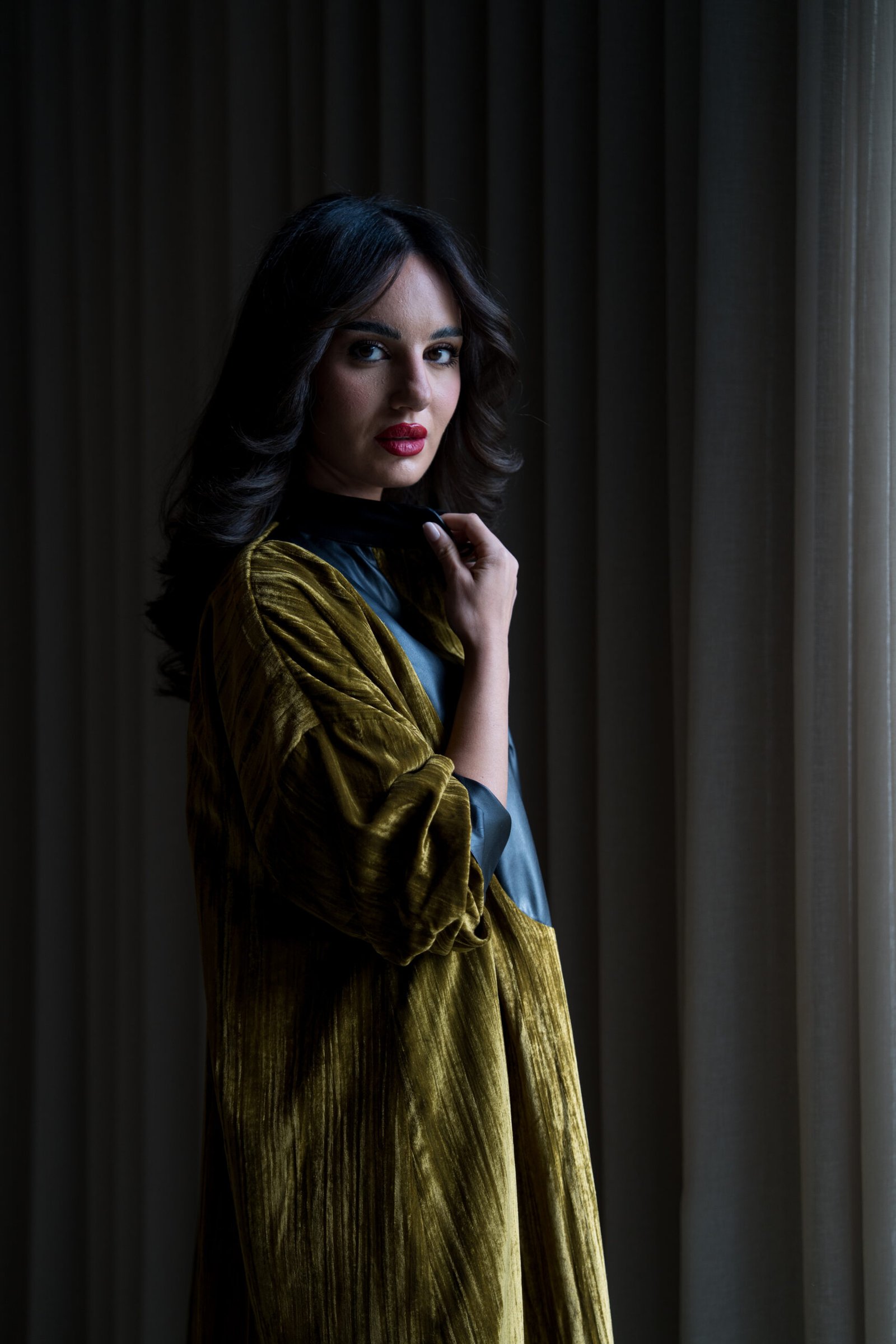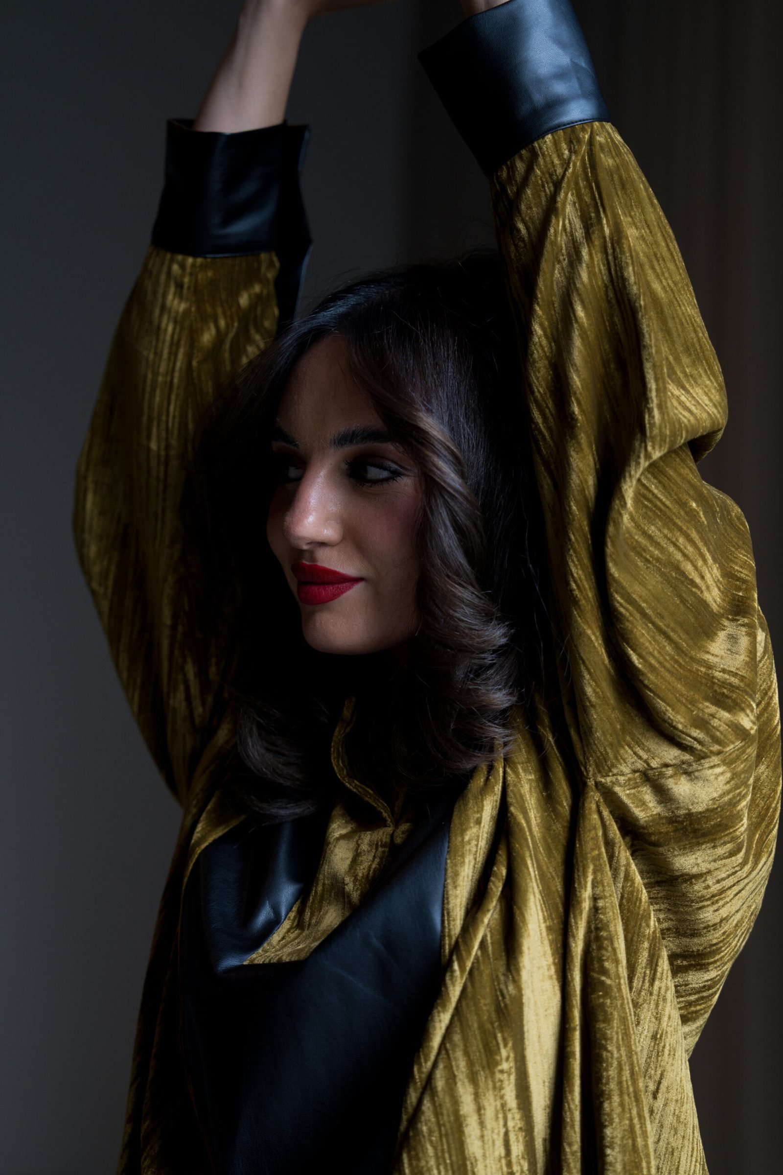 Velvet kaftan featuring premium black leather accents on the chest and sleeves