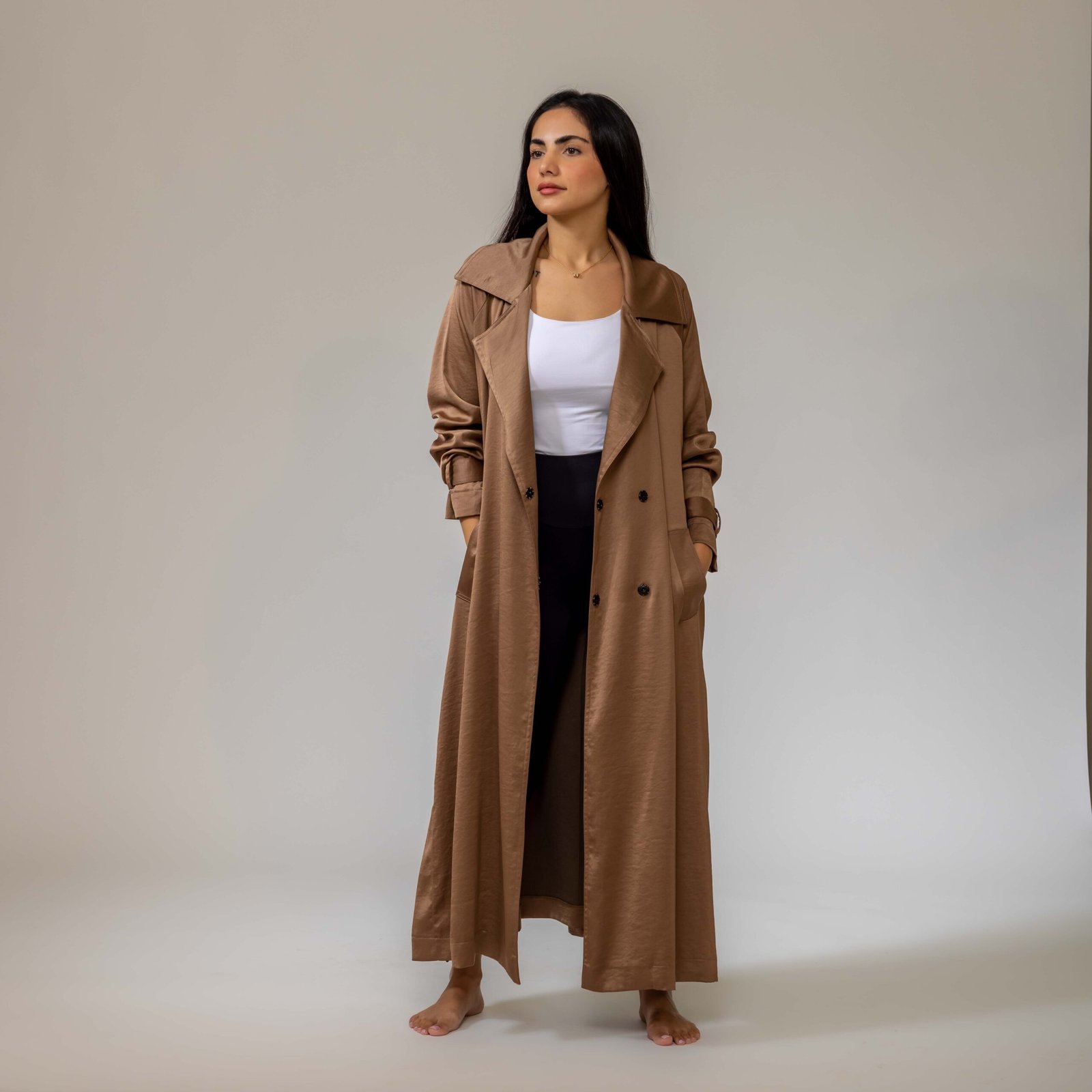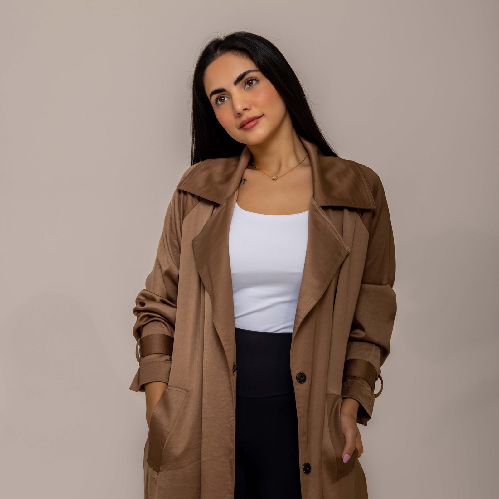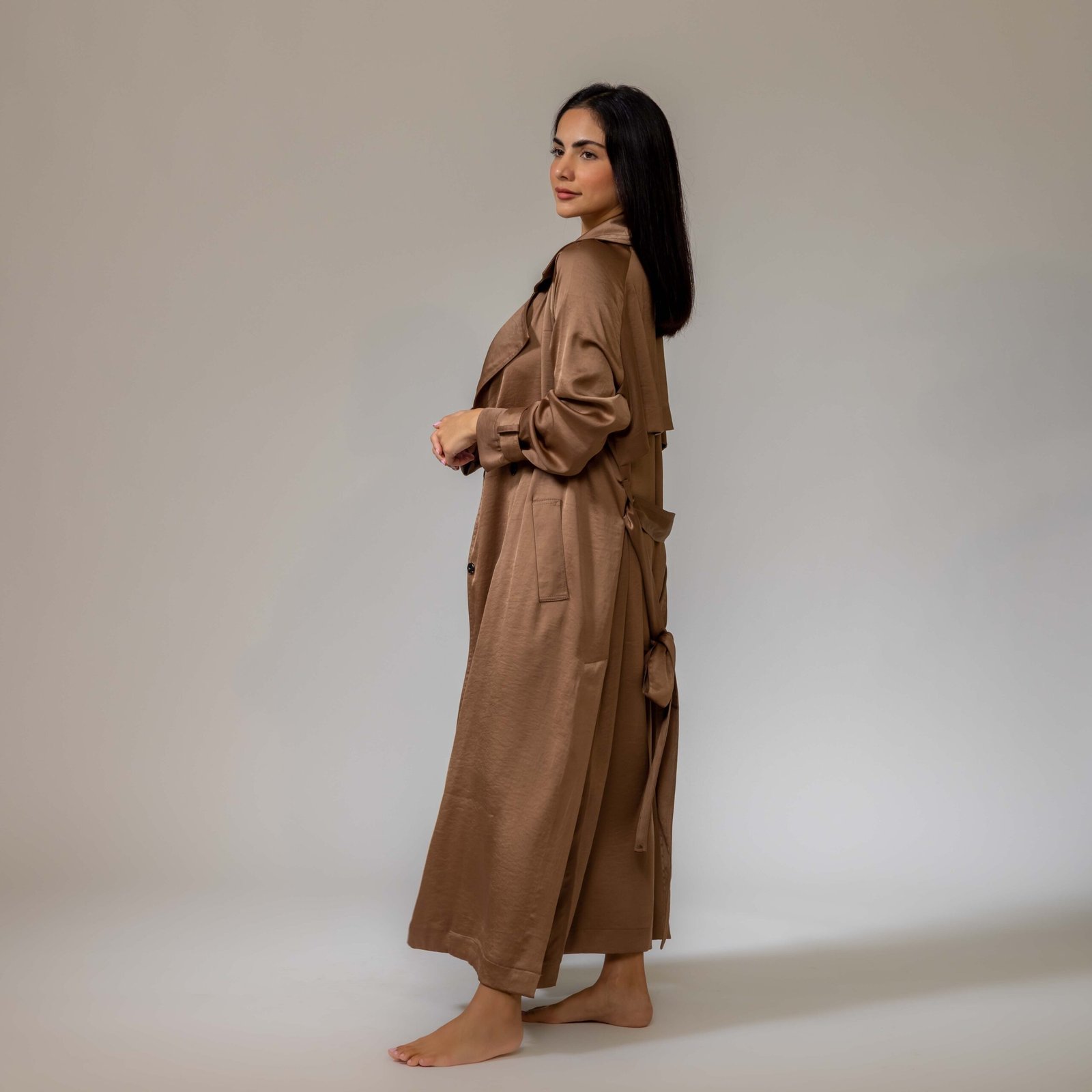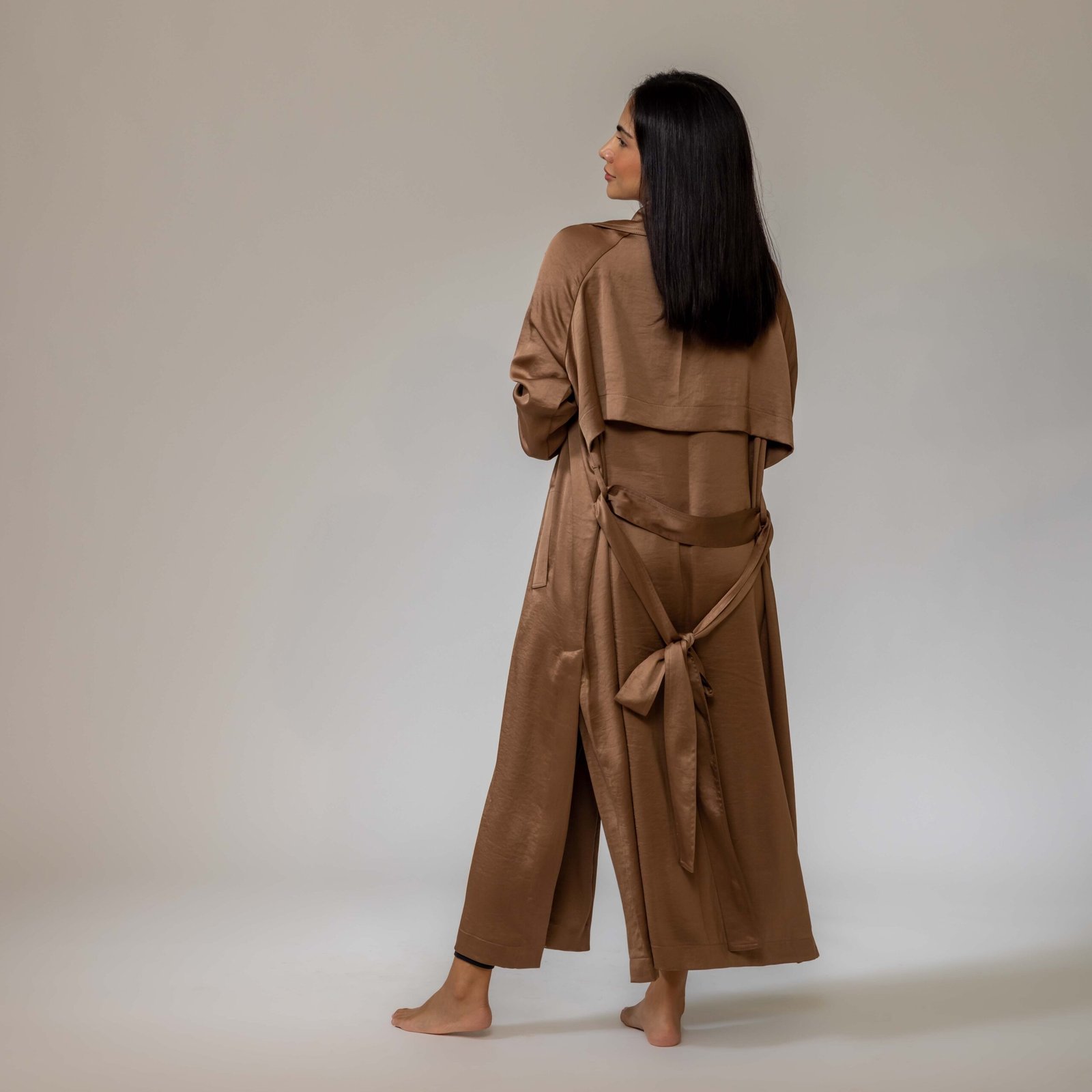 Belted satin trench coat